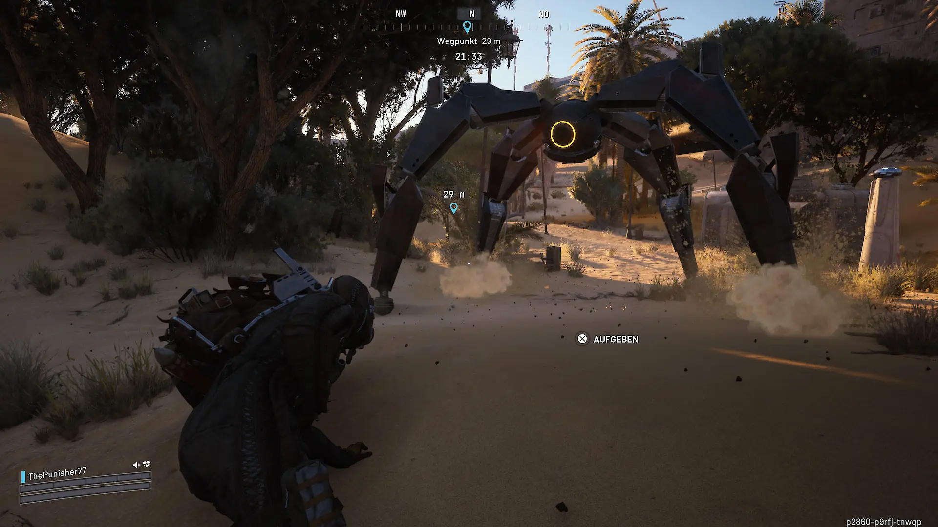 Das Terrain selbst ist abwechslungsreich und glaubwürdig gestaltet. Dichte Wälder, offene Ebenen, schroffe Felsen und verfallene Städte wechseln sich ab. Dazu kommen dynamische Wettereffekte wie Regen, Sandstürme oder dichter Nebel, die nicht nur schön aussehen, sondern auch Einfluss auf Sichtweite und Gameplay haben. Besonders bei Nachtmissionen sorgt das eingeschränkte Sichtfeld für eine beklemmende, fast schon filmreife Stimmung.