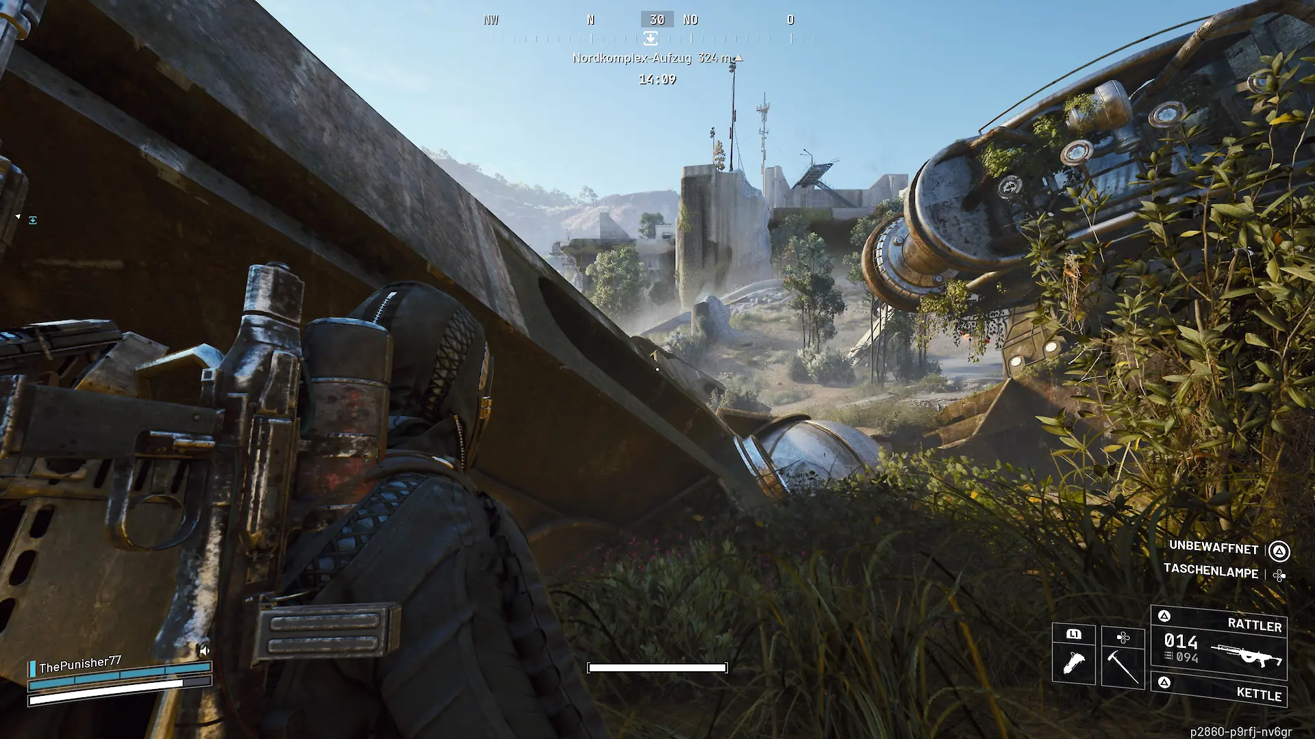 Die Waffen fühlen sich fantastisch an. Jede Knarre hat Gewicht und Rückstoß, jeder Schuss klingt wuchtig und präzise. Ob Schrotflinte, Sturmgewehr oder Granatwerfer – alles hat seinen eigenen Charakter, und der DualSense bringt das auch perfekt rüber. Doch Vorsicht: Waffen und Ausrüstung wiegen etwas, und Überladung macht deinen Raider langsam und träge. Hier heißt es abwägen: Mehr Loot oder mehr Beweglichkeit?