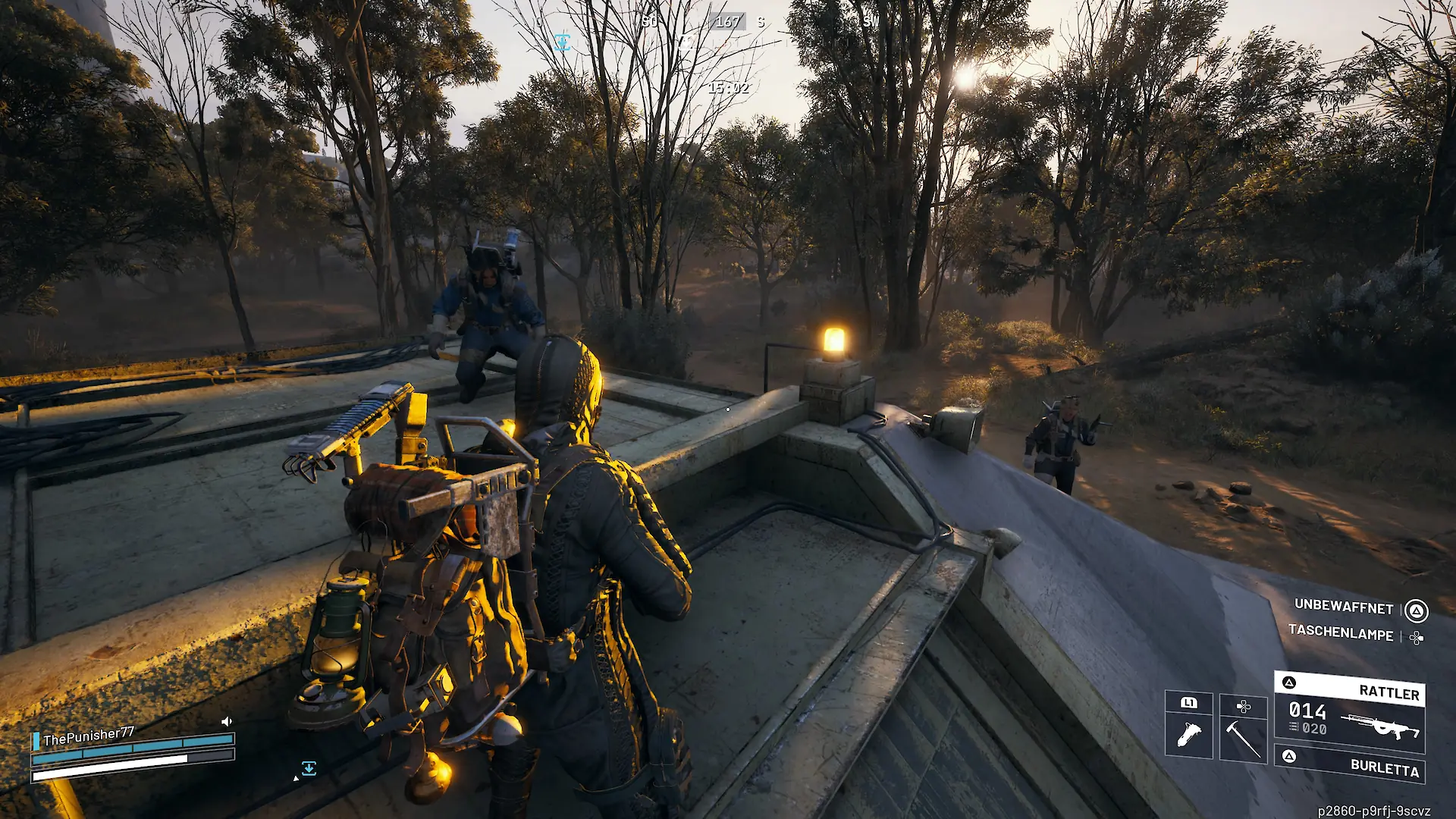 Die Steuerung auf der PS5 ist grundsätzlich solide aber die Kamera in Third-Person kann in engen Büschen oder bei Deckung den Überblick rauben, und gelegentlich bleibt man an Felsen oder Objekten hängen. Auch das ungewollte Abrutschen beim Klettern nervt manchmal. Das größte Ärgernis bleibt aber das Inventarmenü – es ist schlicht nicht für Controller gedacht. Fummelig, unpräzise, mit schlecht platzierten Tooltips. Hier besteht echter Nachbesserungsbedarf.