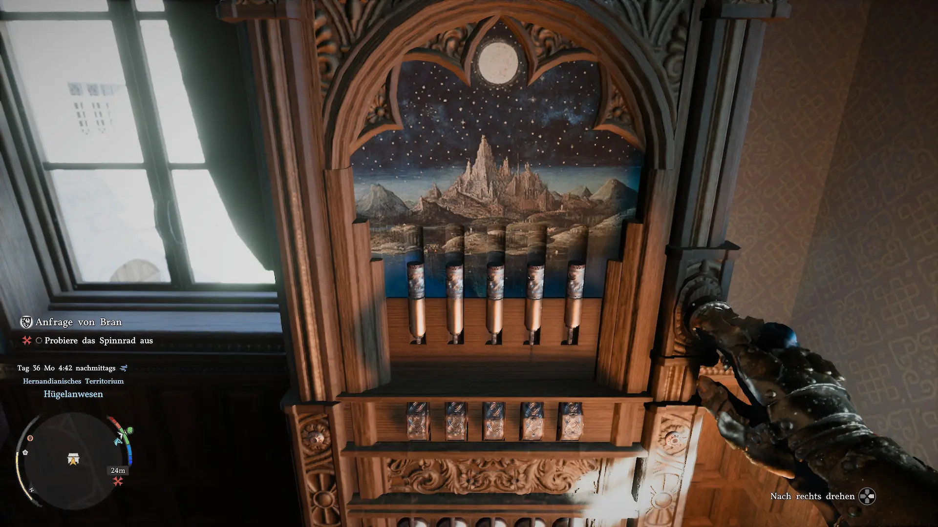 - Lesen von Gegenständen: Rezepte, Bücher und Notizen musst du erst einsammeln, dann untersuchen, dann öffnen, dann teilweise umblättern oder drehen – und danach landen sie weiterhin im Inventar. Was in anderen Spielen ein bis zwei Klicks sind, wird hier zur Geduldsprobe.