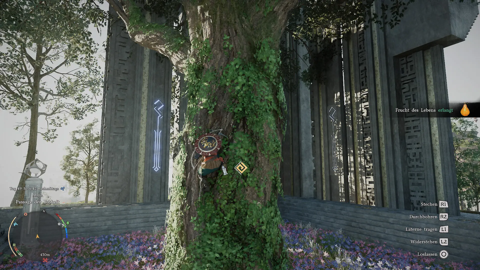 Ähnlich frustrierend ist die Lösung für Bewegung und Sprinten. Statt einer klaren, intuitiven Belegung musst du hier mehrfach eine Taste drücken und teilweise gedrückt halten oder sogar Button-Mashing betreiben. Das ist nicht nur ungewohnt, sondern auf Dauer einfach nervig. Vor allem, weil gleichzeitig die Ausdauer beim Erkunden ständig im Weg steht. In einer so großen Open World wirkt das wie eine künstliche Bremse.