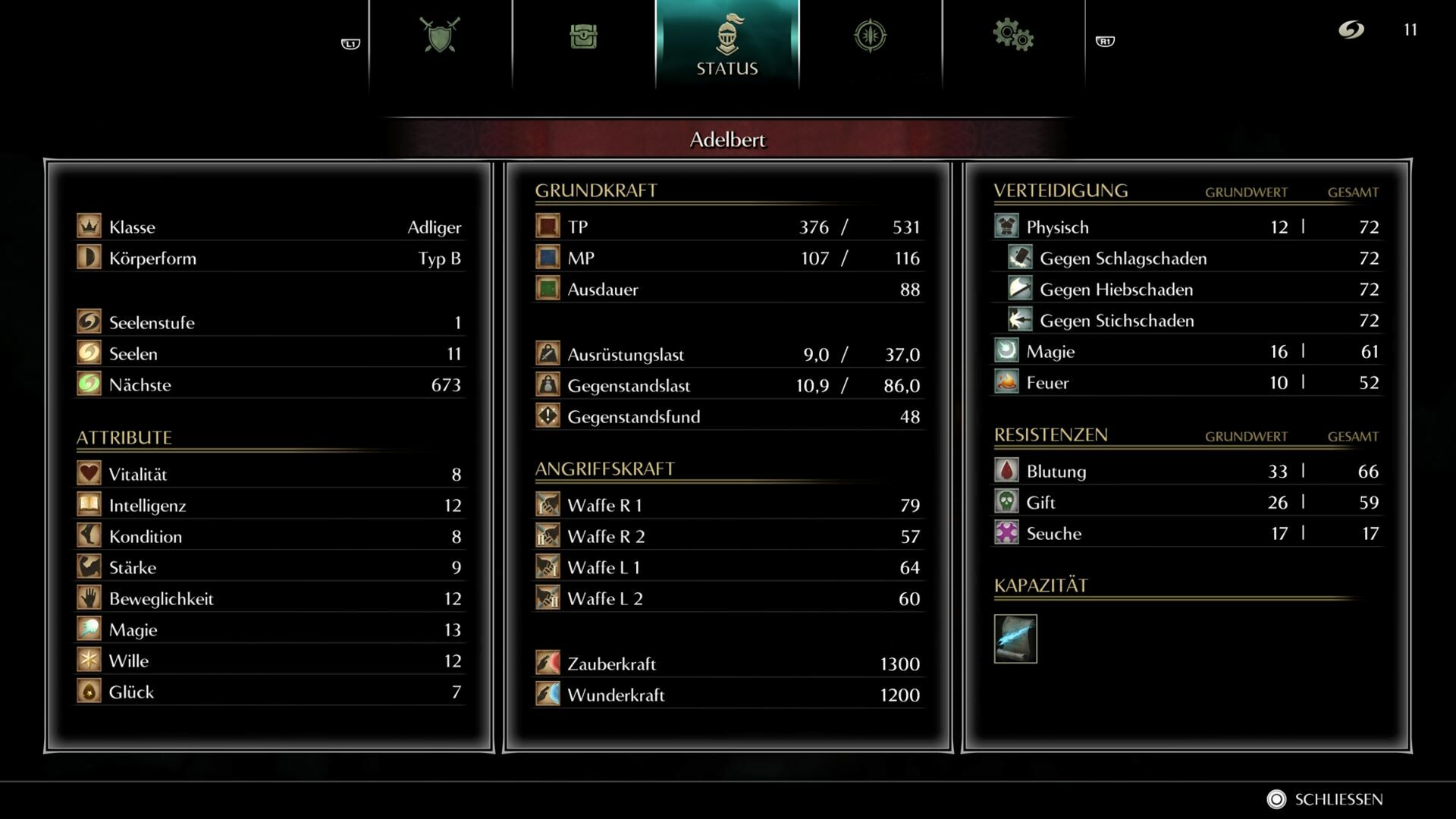 Im Gegensatz zu üblichen Actionspielen wird Einiges geboten, um einem das Leben im Laufe der Zeit zu erleichtern. Die Statuspunkte können nach Belieben verteilt werden und bieten absolute Freiheit, wie ein Charakter sich entwickelt. Anfängliche Klassen sind nur der Ausgangspunkt, wobei der Adelige für Anfänger am Empfehlenswertesten ist, weil diese Klasse Magie und ein Ring für MP Regeneration besitzt.