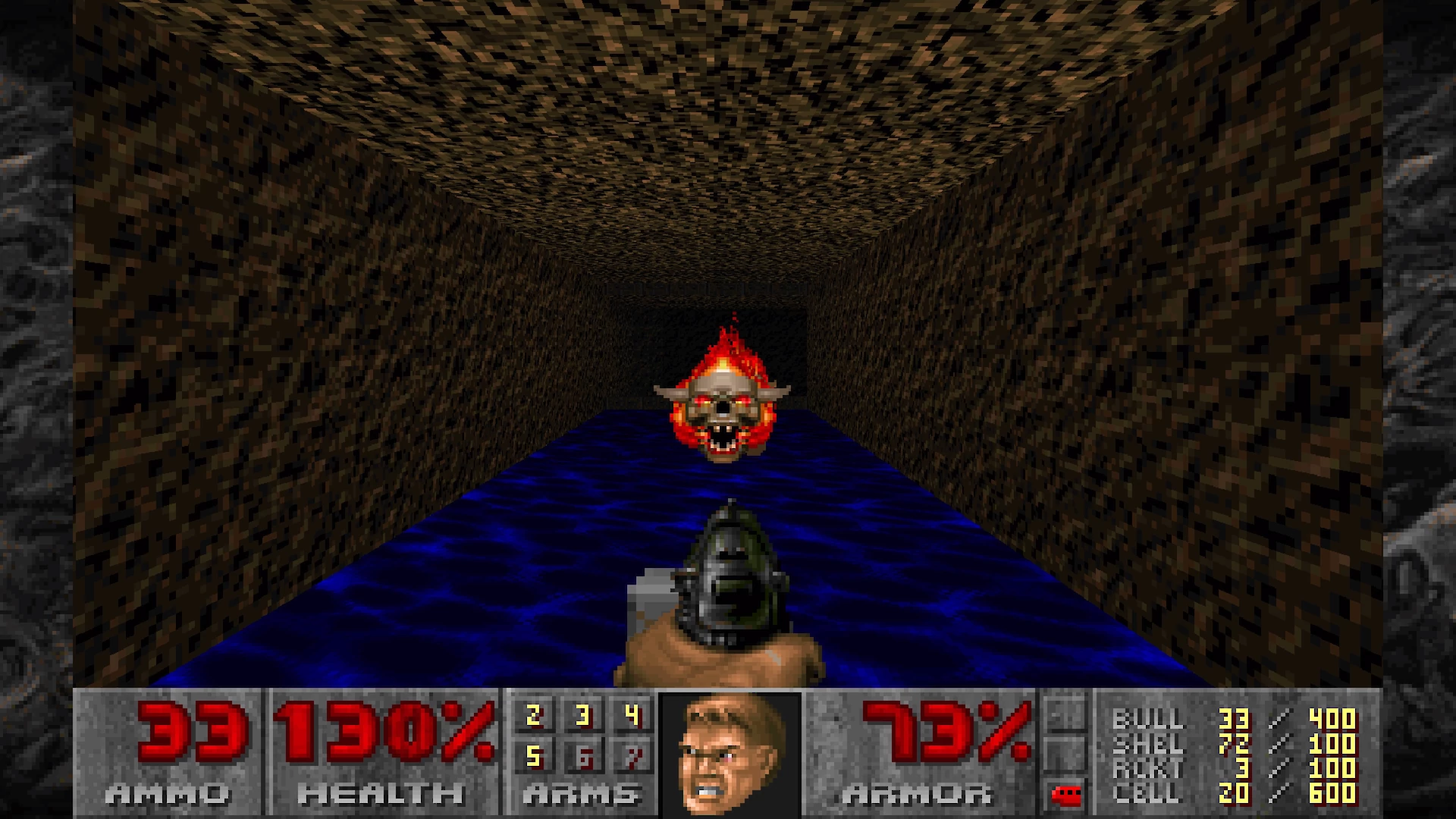 Ebenfalls nicht gegeben hat es eine umwerfende 4k HDR Grafik, wie wir sie heutzutage schon als selbstverständlich erwarten. Wegen der damals beeindruckenden 3D-Grafik und des kommerziellen Erfolgs gilt der Titel dennoch als Meilenstein im Bereich der Computerspiele. Heutzutage schreckt die Pixelgrafik im ersten Moment schon regelrecht ab. Doch gebt dem Spiel bitte eine Chance. Nach ein bis drei Levels gewöhnt sich das Auge komplett an die Tatsache, dass das Spiel im groben Pixel-Look zuhause ist. Lustig: Erledigte Gegner als auch diverse Gegenstände drehen sich in der eigenen Achse immer zum Spieler zu, was erst beim genauen Hinsehen auffällt und die meisten eher zum Grinsen bringen wird. Der Grund dafür dürfte sein, dass durch dieses Verfahren die Objekte in den 3D Räumlichkeiten nur in 2D designt werden mussten, was enorm viel Zeit und Speicherplatz sparte.