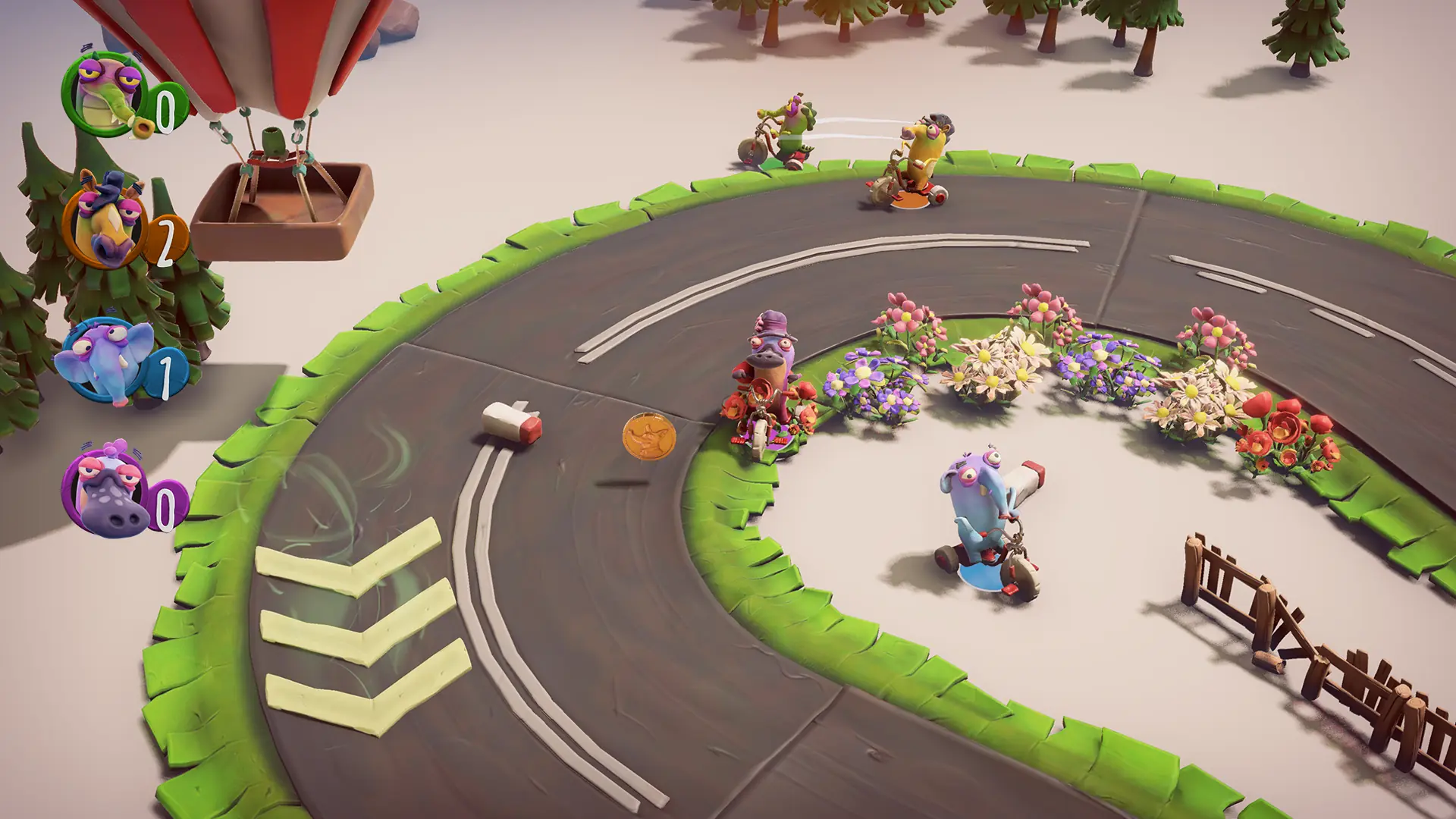 Ihr könnt vor den Beginn wählen, ob ihr einzelne Minispiele testen, eine eigene Runde aus den Minispielen zusammenstellen oder den klassischen Modus mit zufälligen Spielen wollt. Sobald es losgeht werdet ihr von einem Fuchs mit flapsigen Sprüchen begleitet, der euch durch das Spiel führt. Nach einem Selfie wird euch ein lustiger Charakter zugeteilt, den ihr dann durch die Minispiele steuern dürft. In den Minispielen selber, müsst ihr Münzen sammeln und für den Sieg einer Runde gibt es dann eine Krone. Sieger wird am Ende der Spieler mit den meisten Kronen, dabei erwartet euch das ein oder andere Hindernis. So können eure Mitspieler z.B. Power-Ups für die Münzen kaufen und gegen euch verwenden.