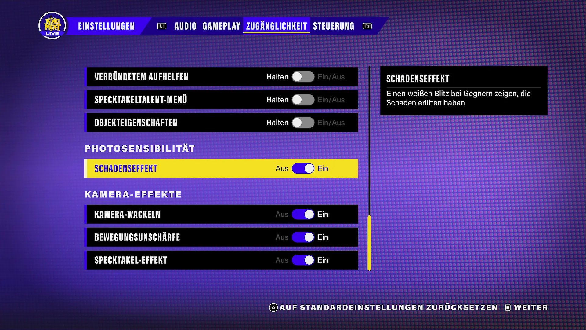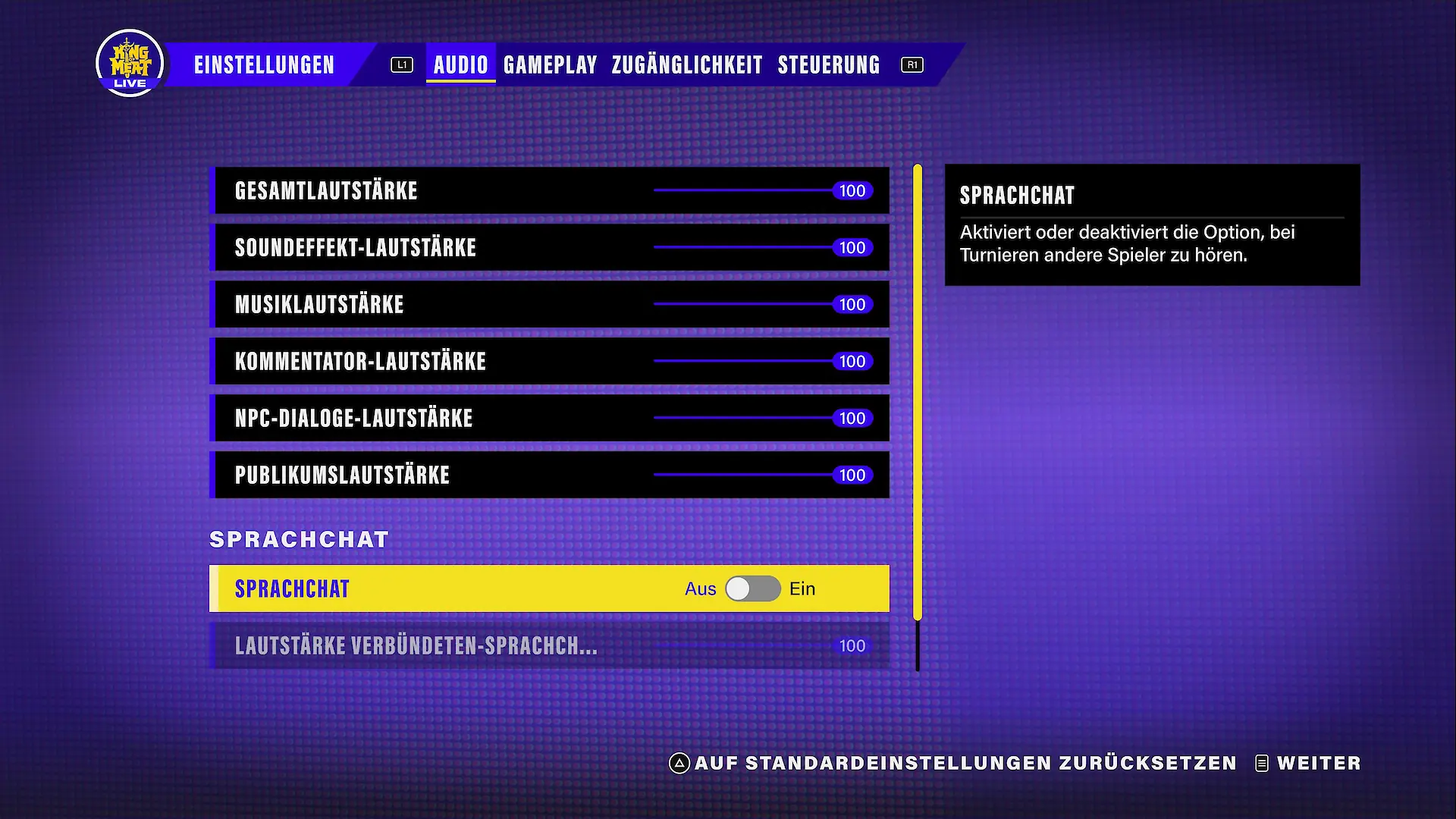 Die Musik passt perfekt zum TV-Show-Thema – temporeich, leicht theatralisch und immer mit einem Augenzwinkern. Soundeffekte sind wuchtig und klar, vom metallischen Klirren der Waffen bis zum tosenden Applaus des Publikums.