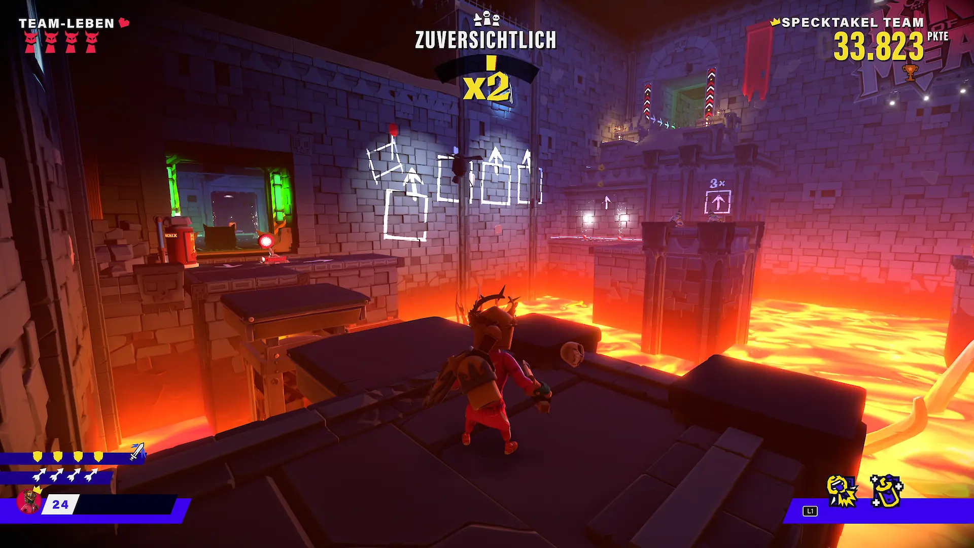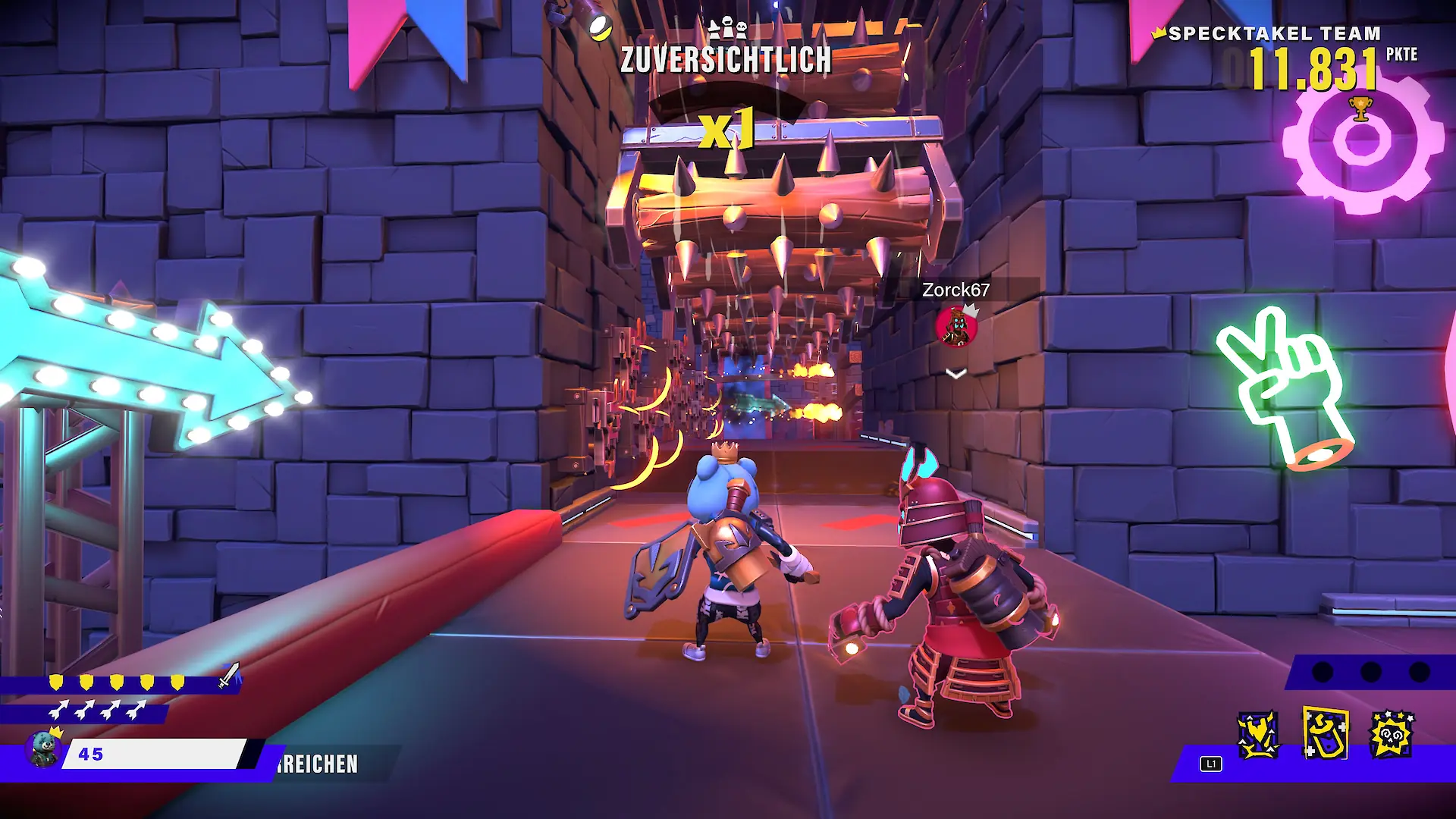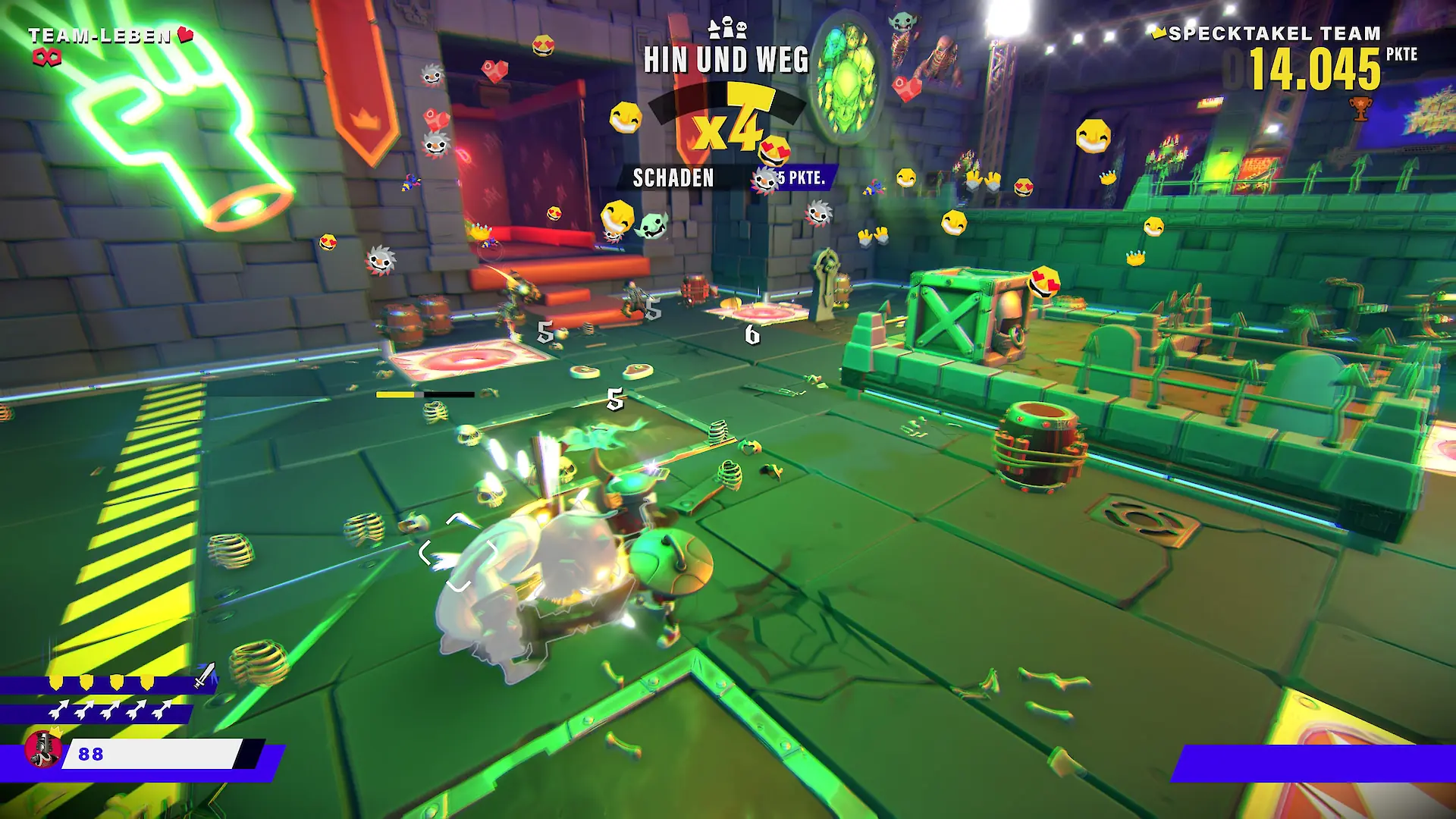 Optisch überzeugt King of Meat durch seinen farbenfrohen, comicartigen Stil. Explosionen, magische Effekte und bunte Schauplätze erzeugen echtes Show-Feeling. Die technische Umsetzung ist solide: Auf der PS5 Pro lief das Spiel im Test butterweich, ohne Ruckler oder Performance-Probleme. Nur ein einziger Absturz trat in der Vorab-Version auf, der Day-One-Patch hat dieses Problem beseitigt.
