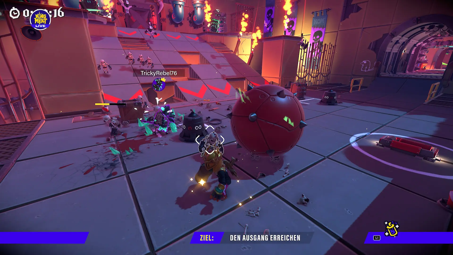 Die Welt von King of Meat ist so verrückt wie charmant. Das Spiel versetzt dich in eine gnadenlose, aber herrlich überzogene Fantasy-TV-Show, in der Ruhm, Ehre und Überleben auf dem Spiel stehen. Zwischen Scheinwerfern, Jubelrufen und Explosionen kämpfst du dich durch gefährliche Arenen, während das Publikum dich anfeuert.