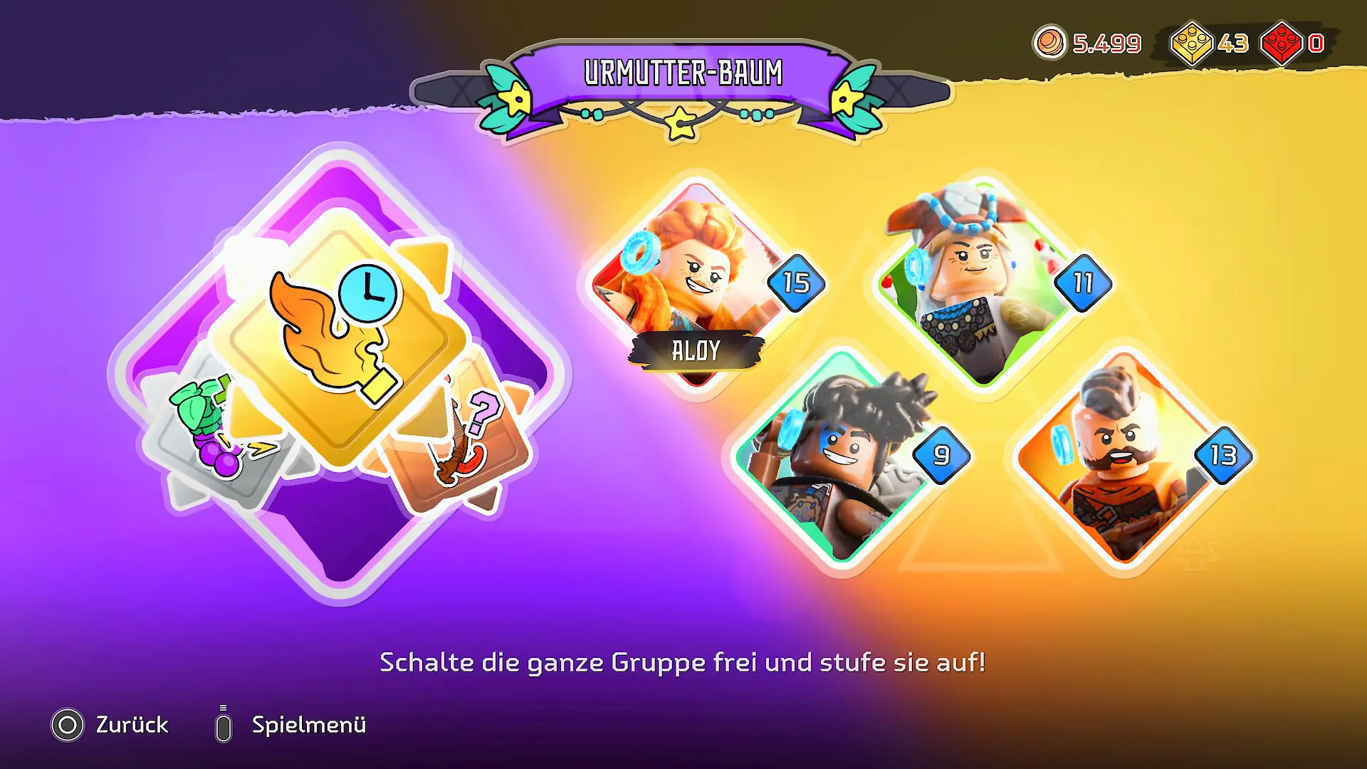 Du kannst nicht nur Aloy, sondern auch ihre Gefährten Varl, Erend oder Teersa spielen, die jeweils über individuelle Fähigkeiten und einen eigenen Fähigkeitenbaum verfügen. Upgrades schaltet man natürlich mit den zuvor gesammelten LEGO-Steinen frei.