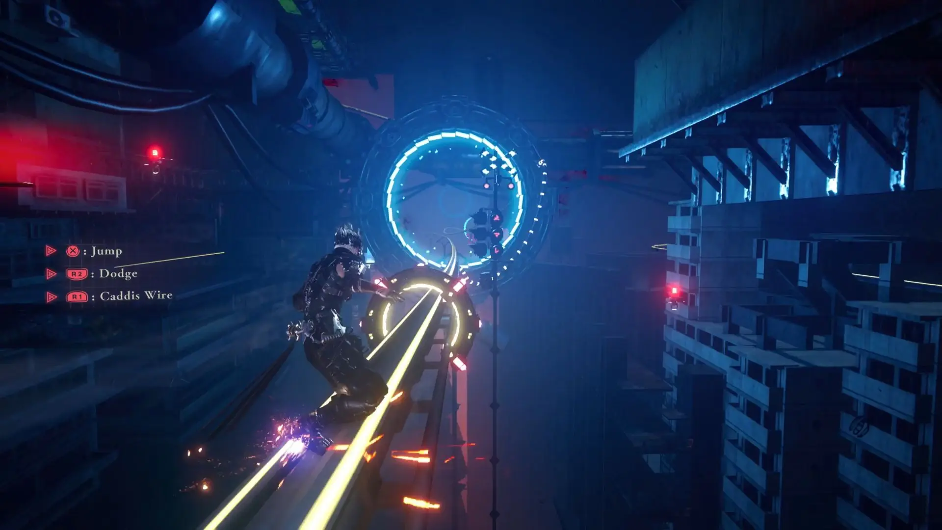 Abgesehen von den typischen Bewegungsmöglichkeiten wie horizontaler und vertikaler Lauf gegen die Wand sind noch weitere Bewegungs-Etappen hinzugekommen. Mit dem neuen Greifhaken können markierte Punkte wie in den Batman Arkham- bzw. Spider-Man-Spielen angepeilt und hingezogen werden. Der Greifhaken hat keinen direkten Einsatz im Kampf, abgesehen von der Positionierung durch die ausgewählten Punkte.