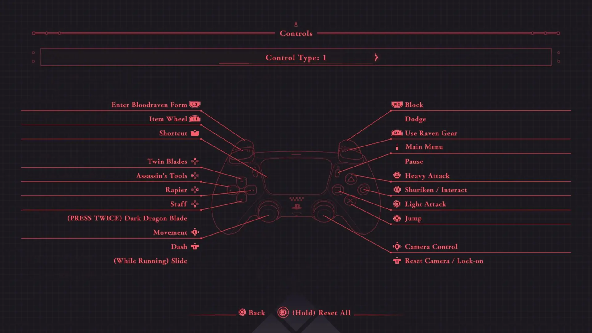 Neu hinzugekommen ist jetzt eine Schnelltaste für ein verlangsamtes Echtzeit-Radial Gegenstandsmenü, schnelles Waffenwechsel über das Steuerkreuz, Bloodraven Waffenform, Temporärer Berserk Form und Greifhaken.