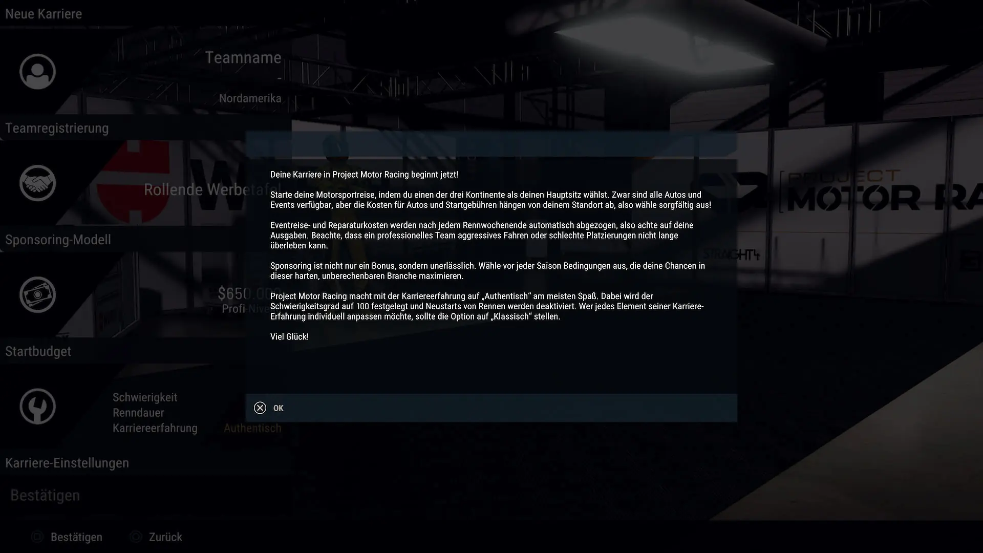 Groß angekündigt wurde ein neuartiger Rennsport-Karriere-Modus als intensiver Survival-Simulator, in dem ihr euch in die Rolle von Fahrer und Team-Manager begibt. Zum Start könnt ihr ein Budget von 75.000 bis 2 Millionen Dollar wählen und ein passendes Auto kaufen. Zusätzlich müssen Sponsoren-Deals verhandelt werden, und jedes Rennwochenende verursacht euer Team Einstiegsgebühren sowie Reisekosten. Jeder Crash rächt sich finanziell, und zu viele Fehlschläge könnten zur Pleite und zum Karriereende führen. Im gnadenlosen Authentic Mode gibt es keine Anpassungen, während der Classic Mode diese z. B. erlaubt und somit den Karriere-Modus erleichtert. Im Authentic Mode musst du in unteren Klassen wie der Mazda MX-5 Cup starten und dich in die Top-Meisterschaften hocharbeiten.