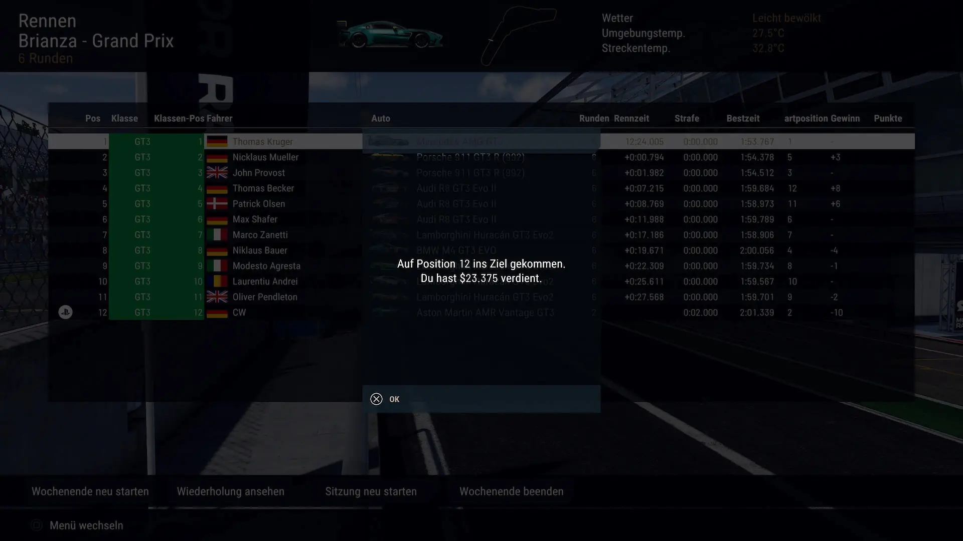 Hinzu kommt ein sinnloses Strafensystem. Z.B. von der Strecke abgekommen durch Verbremsen, 2 Sekunden. Überholen aber klarer Vorteil verschaffen, auch 2 Sekunden. Die Strafen haben also mit echten Rennsport kaum was zu tun.